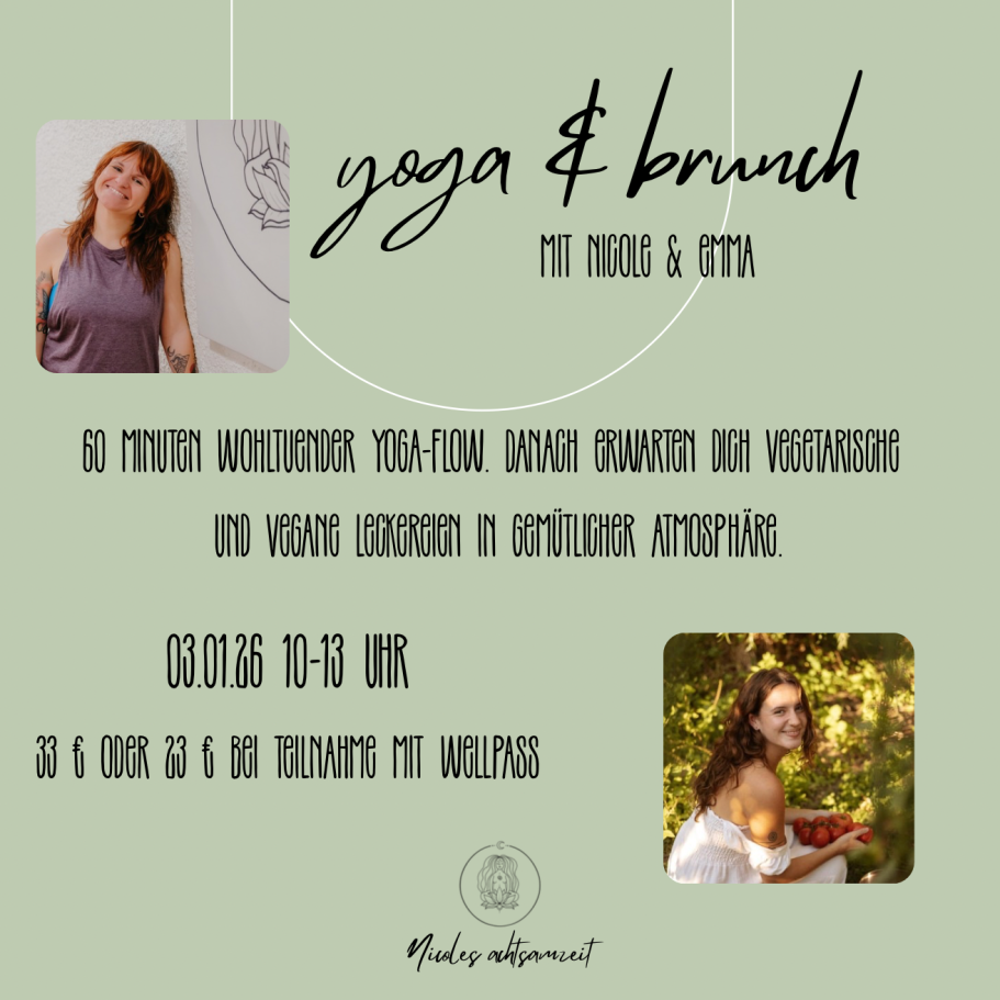 60 Minuten wohltuender Yoga-Flow, danch kannst du dich verwöhnen lassen mit vegetarsichen und veganen Leckereie.